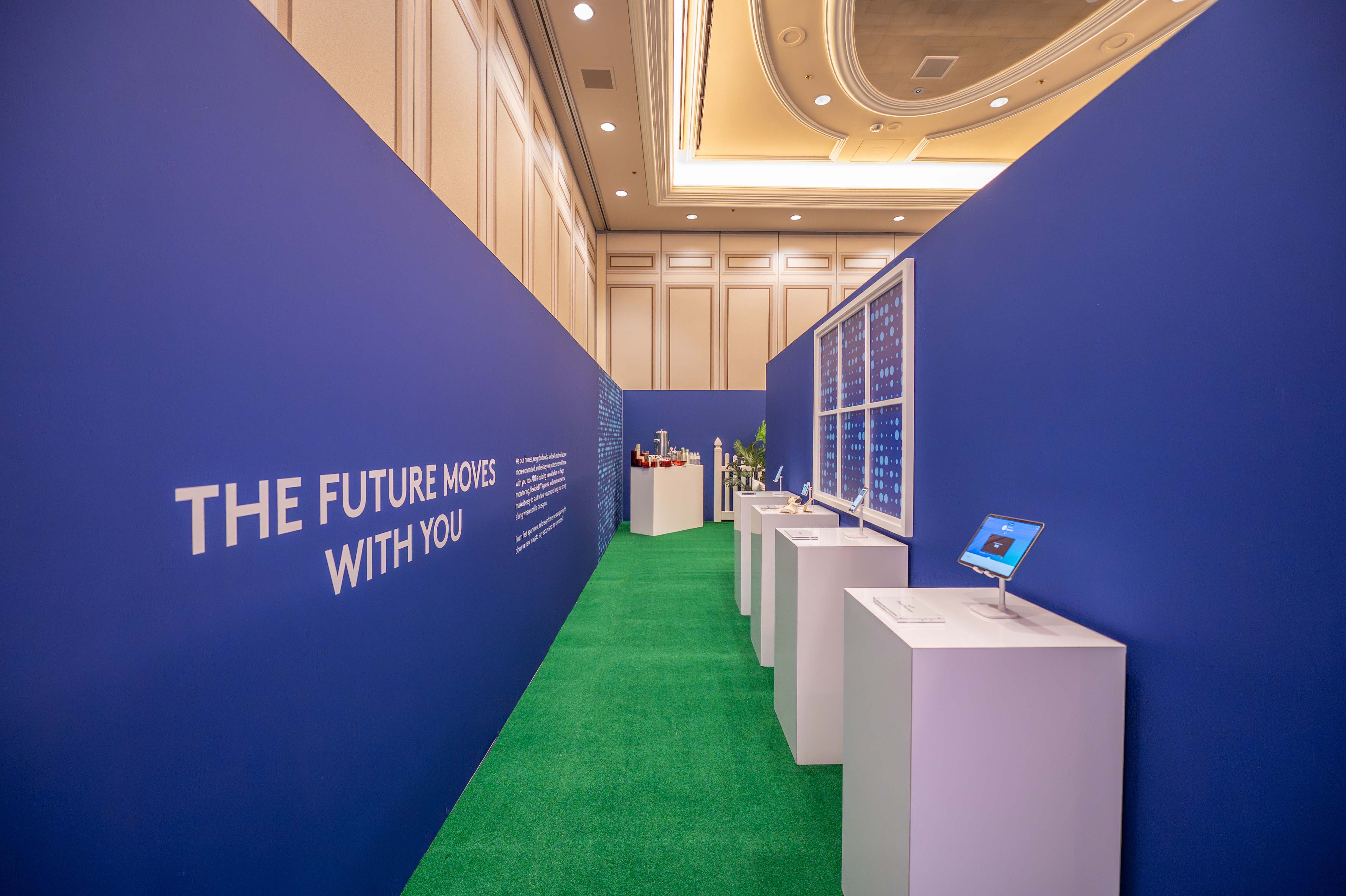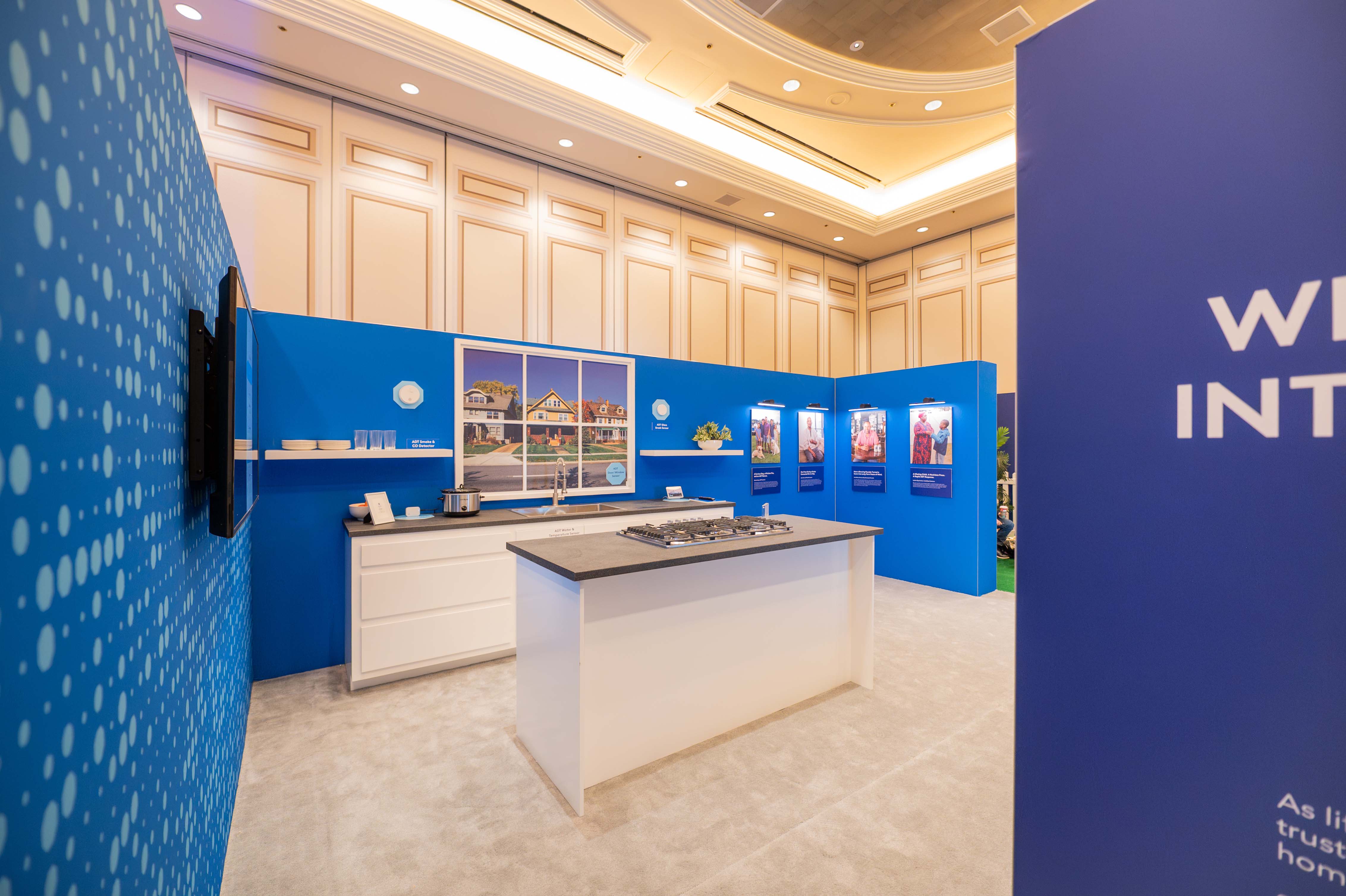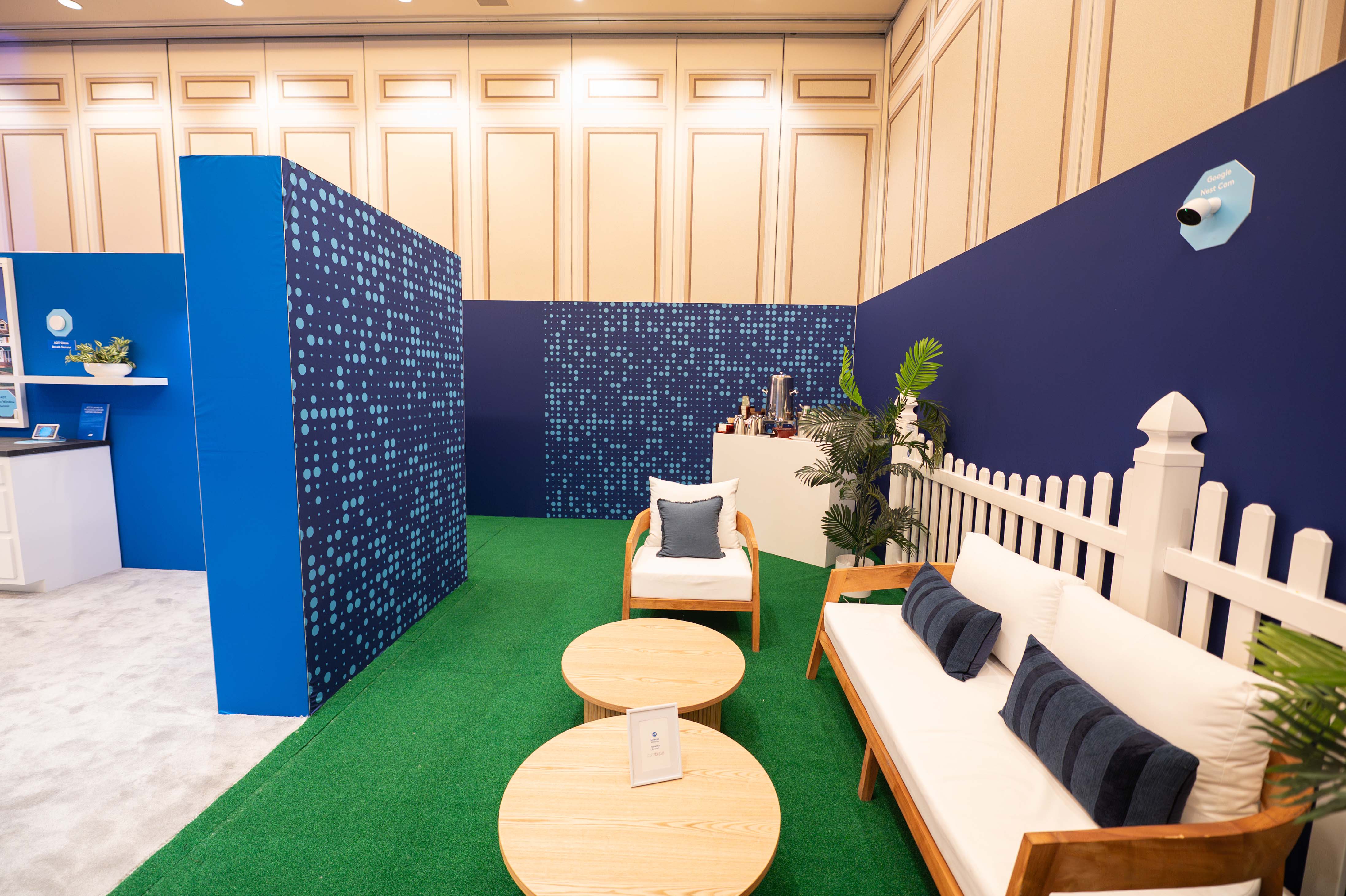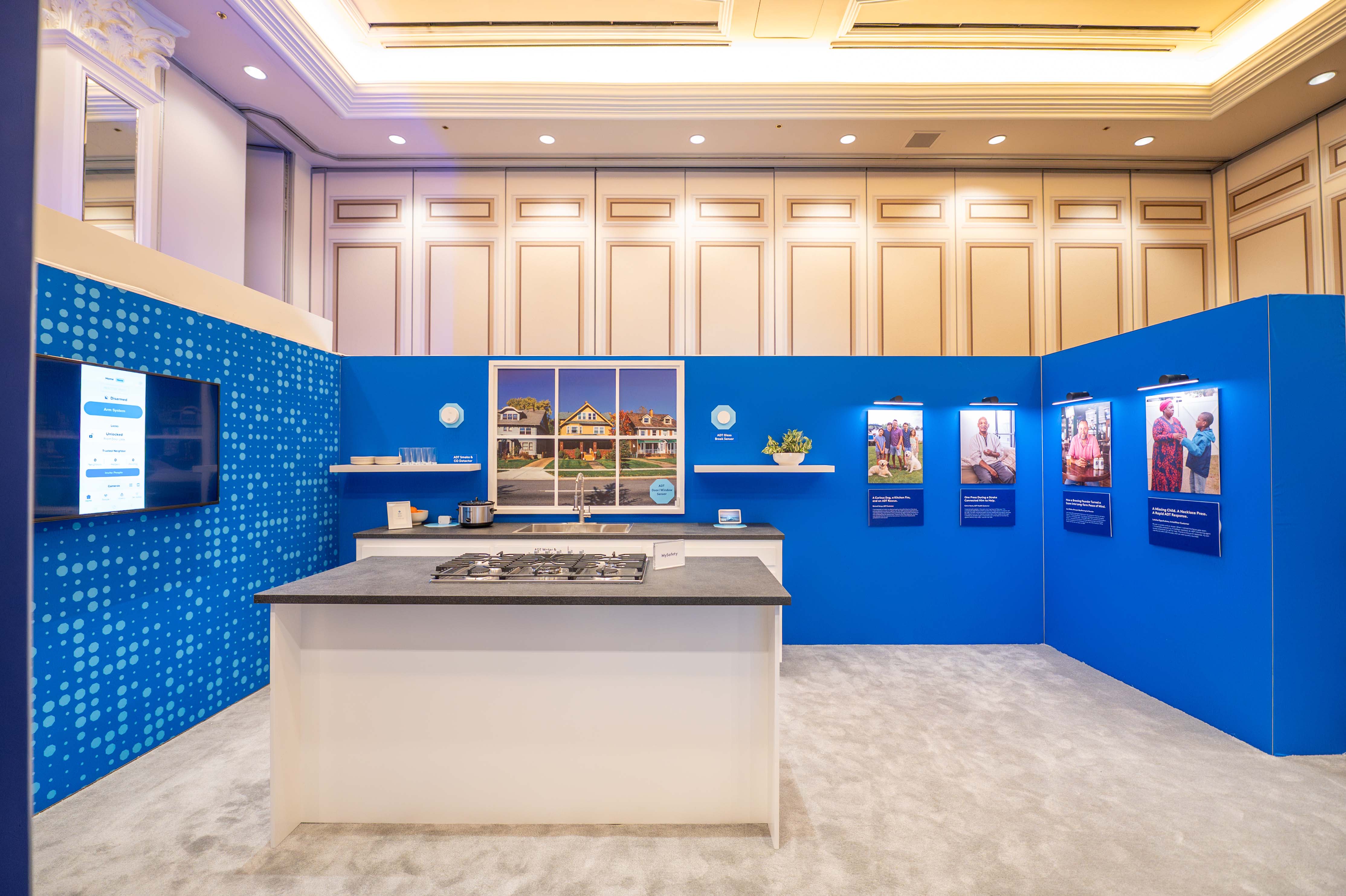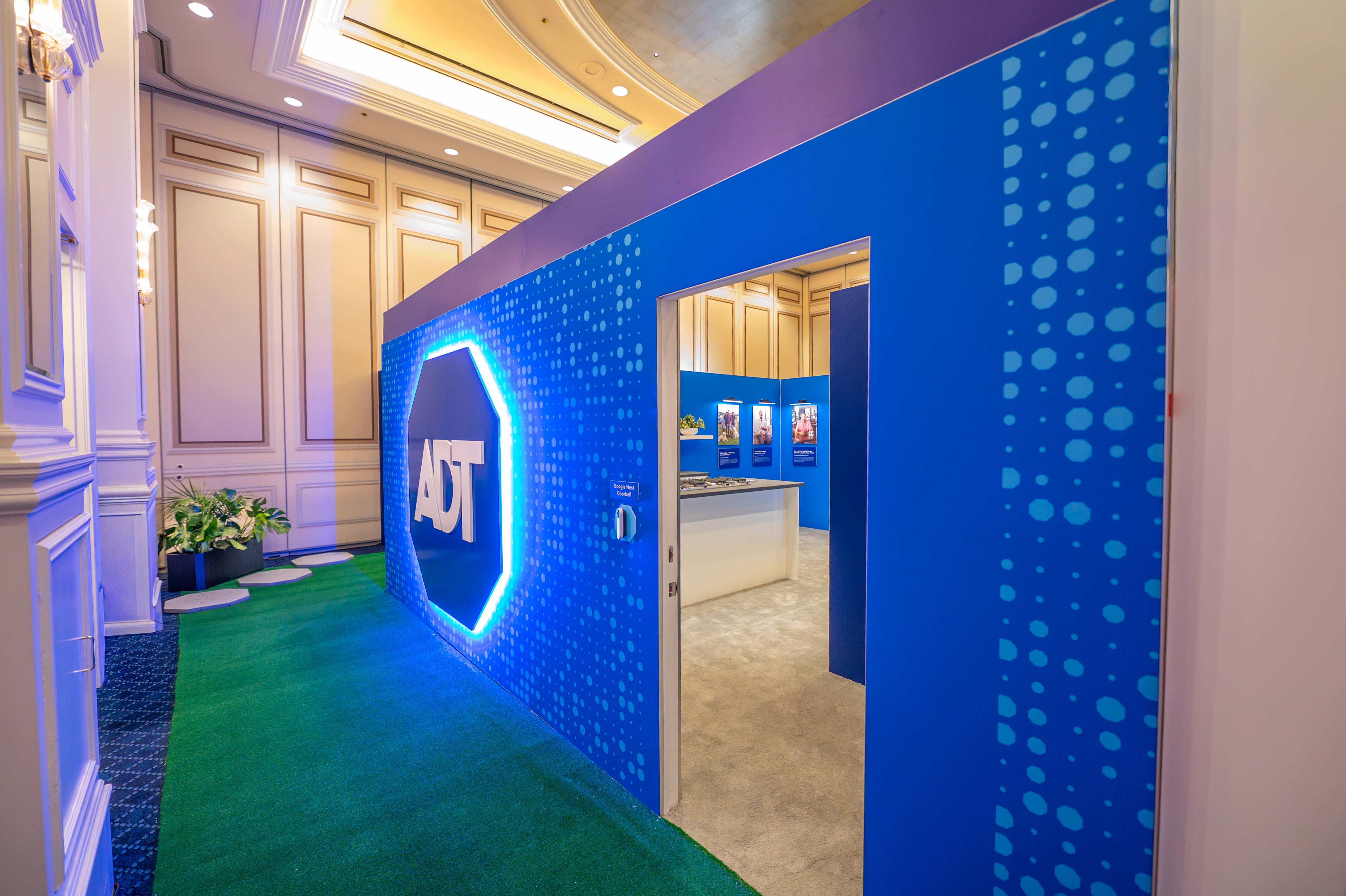 Designed a fully branded, room-within-a-room experience—complete with an entryway, kitchen, living room, and backyard—transforming the meeting space into a realistic “home” environment. This immersive setup showcased ADT’s devices in context, highlighting their compact footprint and seamless connectivity, while inviting guests to interact with and demo the products firsthand.